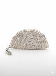 Descubra o charme artesanal desta elegante carteira semicircular feita à mão em crochê. Com seu design único em formato de meia-lua e textura delicada em tons neutros de bege e creme, esta peça combina sofisticação e praticidade.